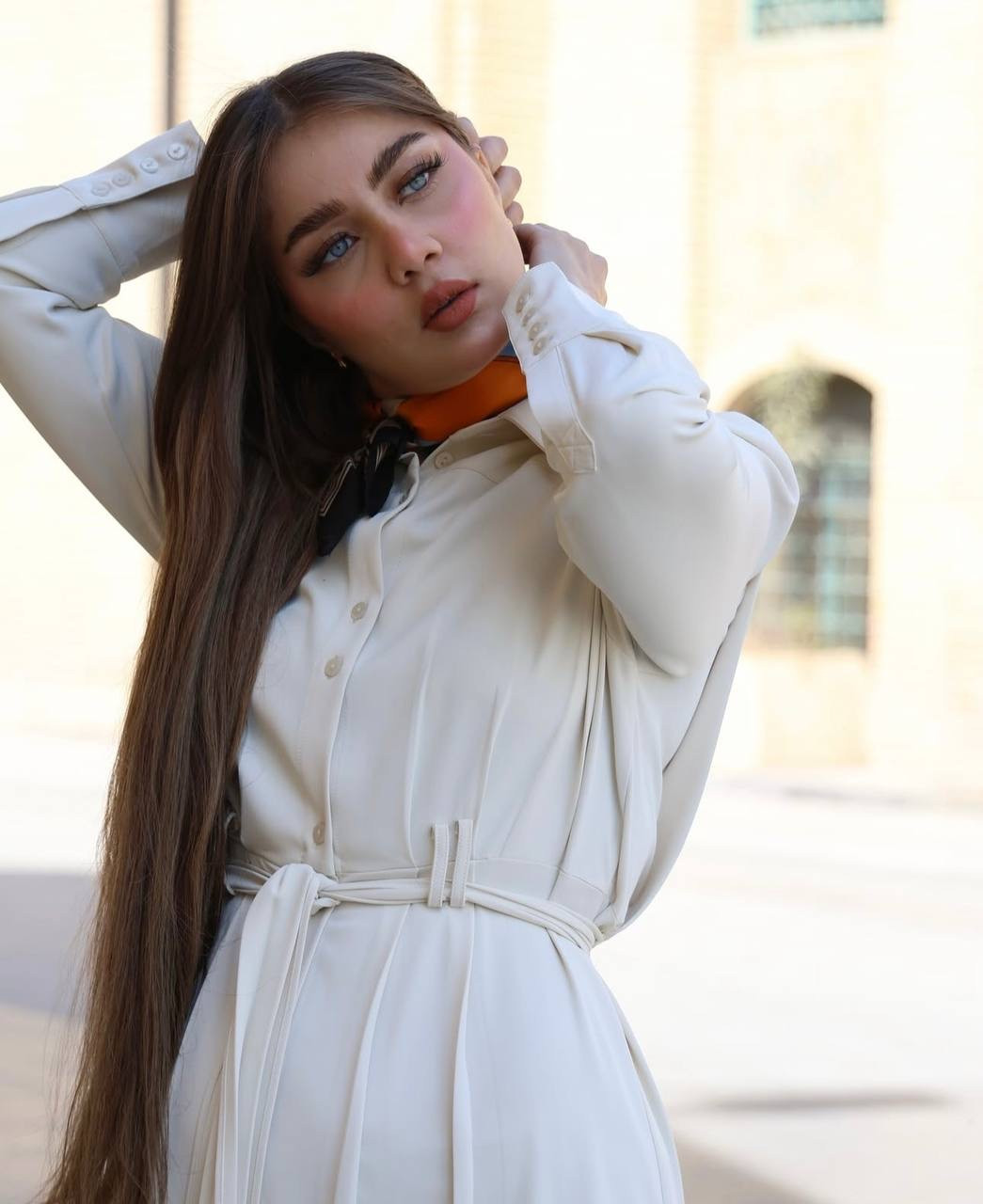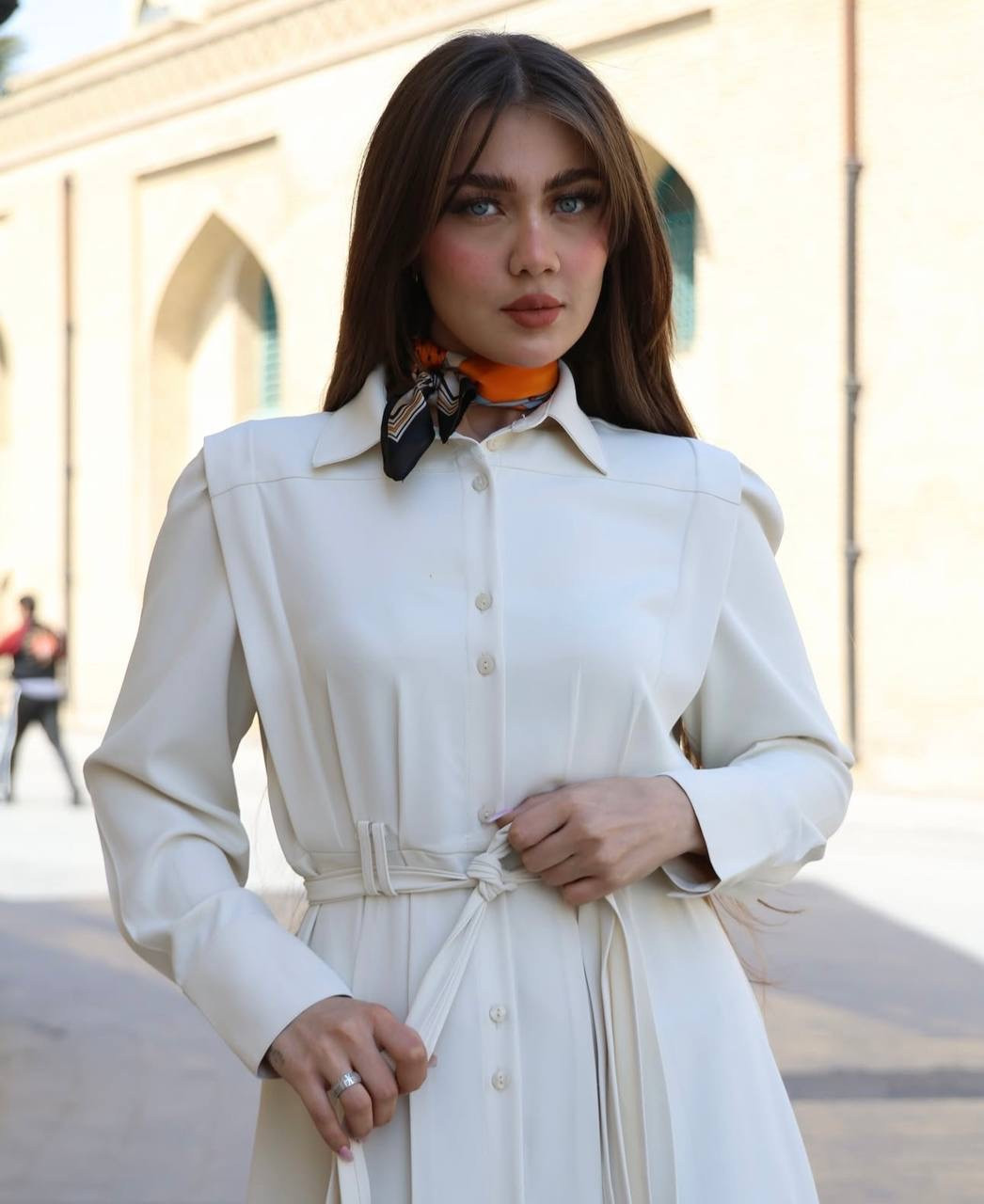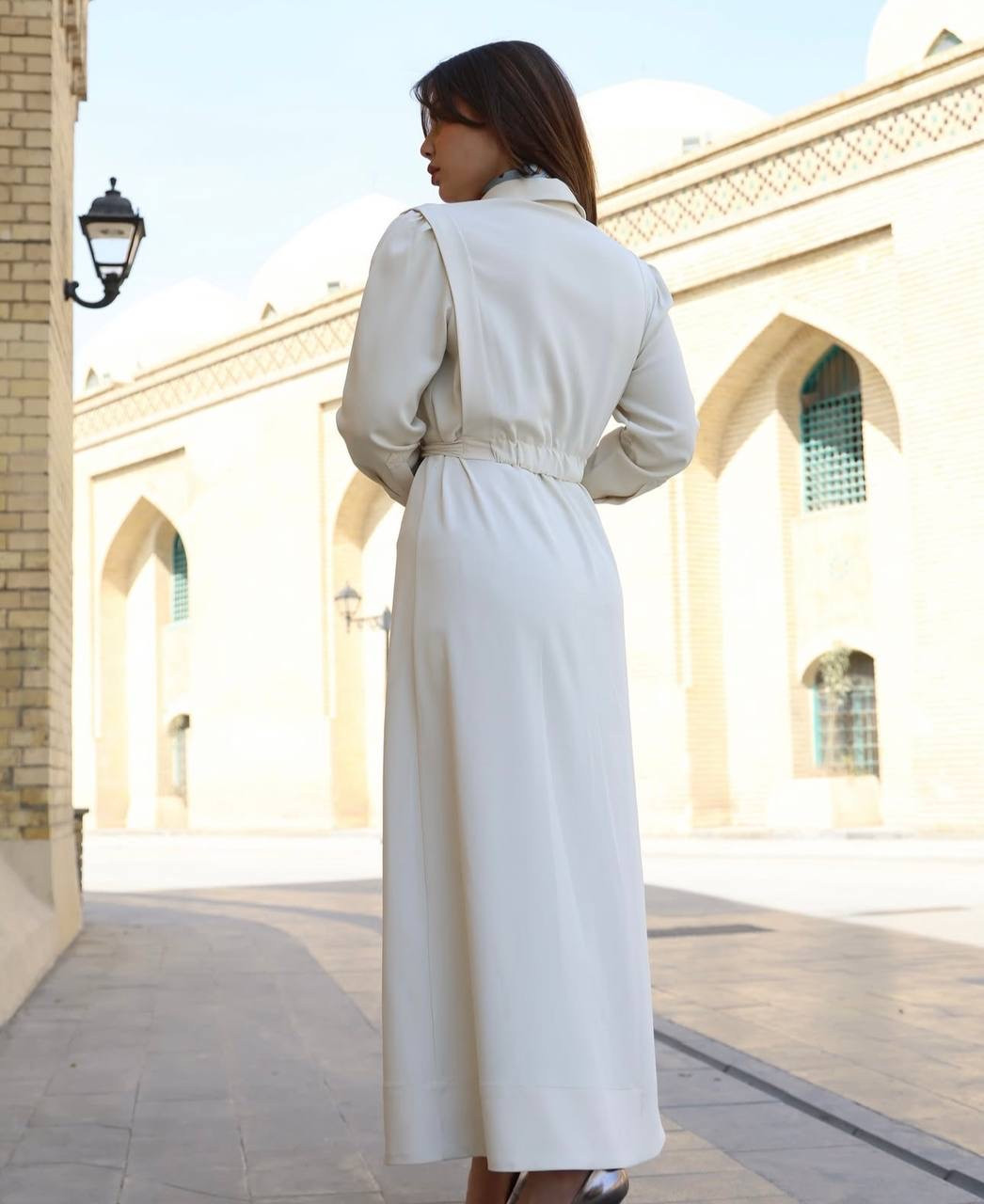 فستان خامة كوالتي عالي كريب صيفي ثقيل وبارد تصميم مميز طول الفستان 140 سم لون اوف وايت فقط