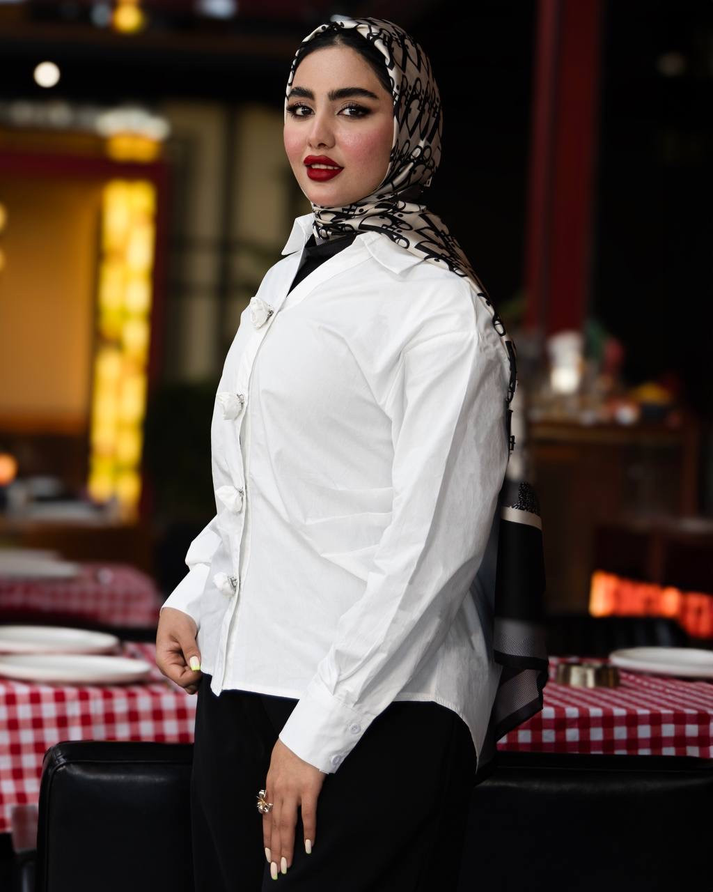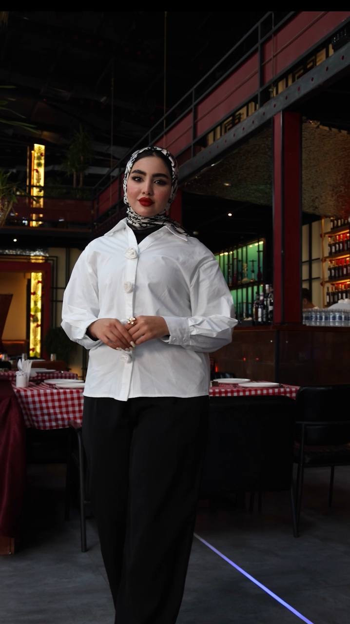 قميص كوالتي عالي ازرار شكل وردة( متحركة)ممكن تخلون الورد او تشيلو مع كسرات بمنطقة الخصر طول القميص70 سم الخامة بوبلين قطن