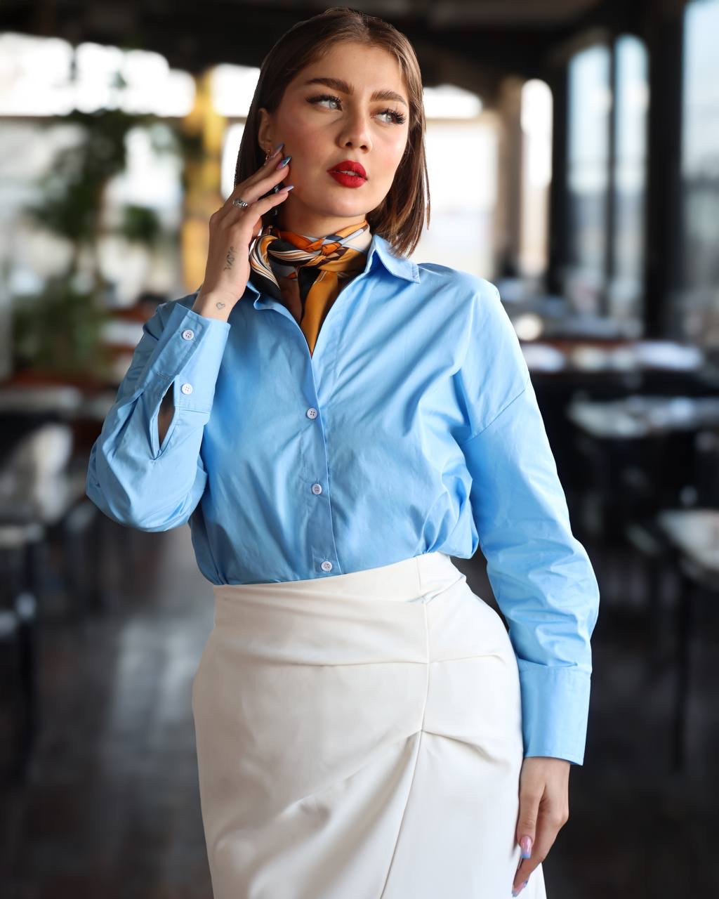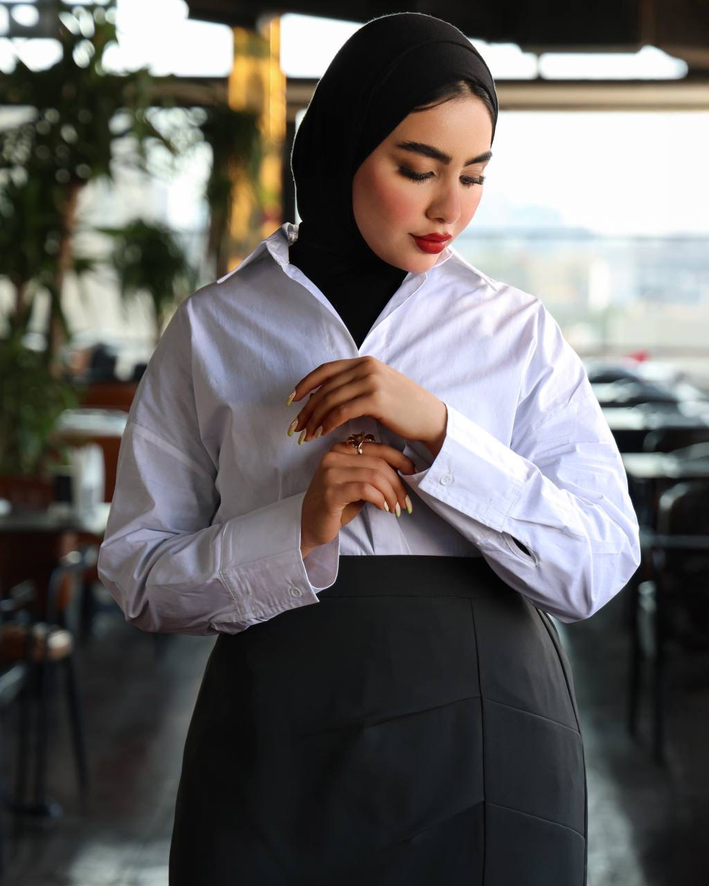 قميص قماش خامة بوبلين ناعم قطن طول القميص75 سم قالب القميص راهي