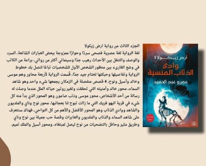 وداي الذئاب المنسية هي الرواية السابعة للكاتب المصري عمرو عبد الحميد والصادرة عن عصير الكتب للنشر والتوزيع سنة 2023، وهي الجزء الثالث من سلسلة أرض زيكولا الشهيرة، وينقل لنا هذا الجزء ذو 296 صفحة، مغامرات جديدة للبطل خالد حسني، الذي يعود مرة أخرى إلى عوالم زيكولا الغريبة ليعيش رحلة مليئة بالتحديات والمخاطر في سبيل تخليص ...